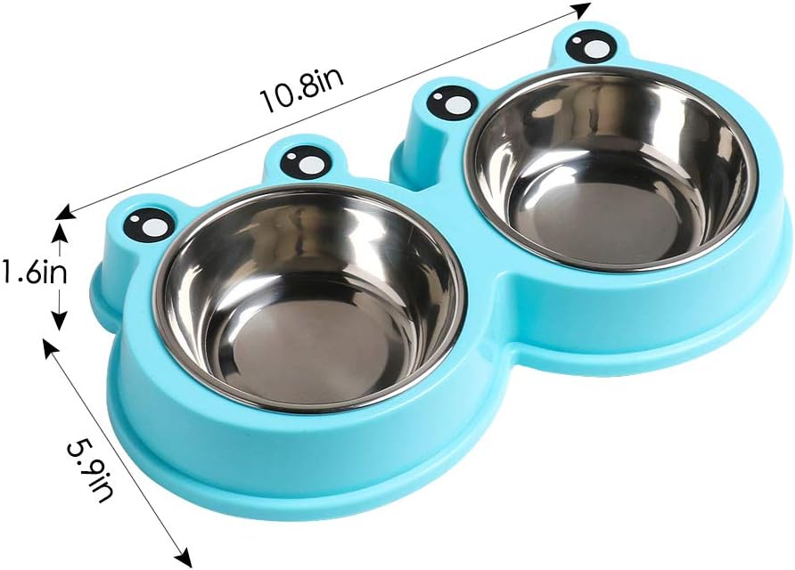 - SPECIAL DESIGN: This pet dinner set has double stainless steel dog bowls, one for food and the other for water, choosing bright colors which will attract pets’ interest, make it much fun for the dog or cat while eating.